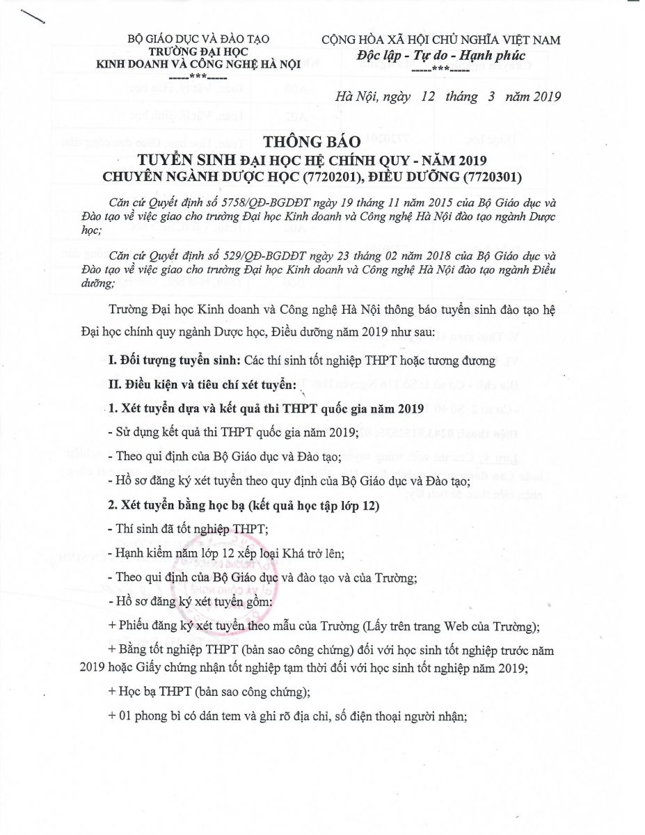 Trường đại học Kinh Doanh Và Công Nghệ Hà Nội Thông báo hợp tác tuyển sinh đào tạo cùng trường Cao Đẳng Công Nghệ Y - Dược Việt Nam các mã ngành như sau:
