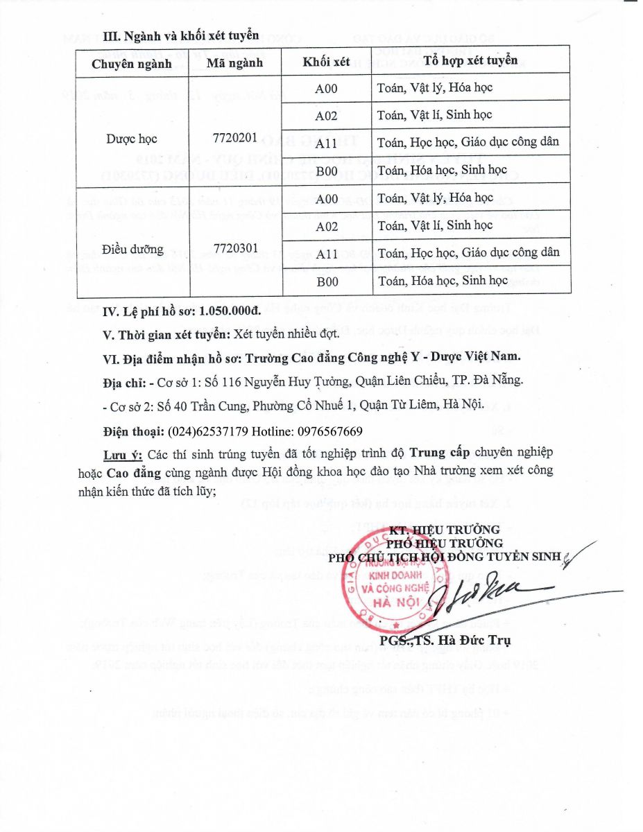 Địa chỉ tiếp nhận hồ sơ: Trường Cao Đẳng Công Nghệ Y - Dược Việt Nam